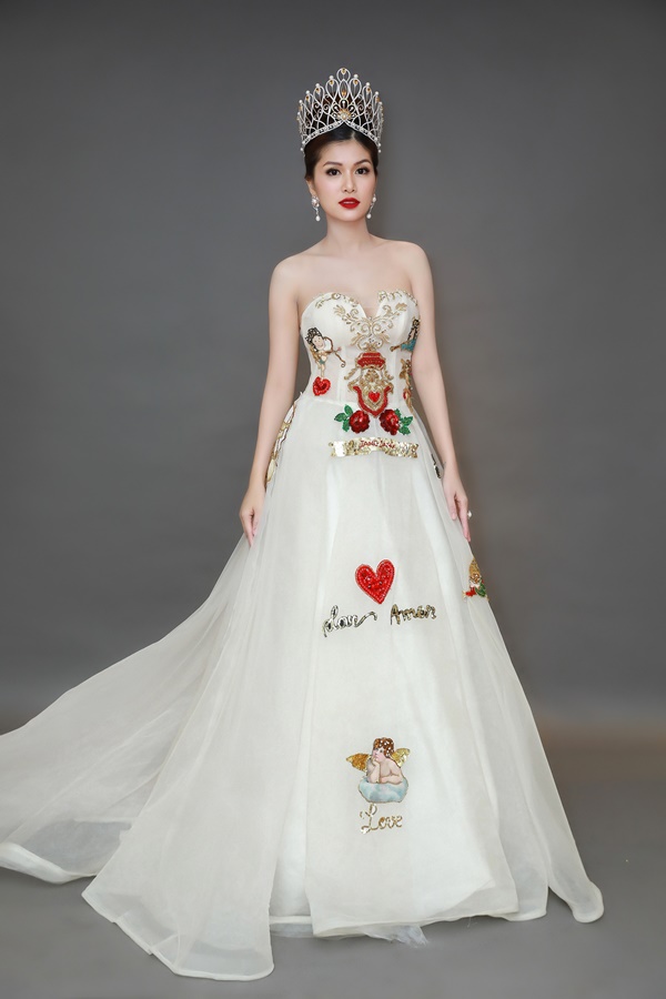 Hoa hậu- nữ hoàng 5 con Hồ Oanh Yến tựa nữ thần trước thềm tiệc tri ân khi đăng quang nữ hoàng sắc đẹp thế giới- QUEEN OF BEAUTY WORLD 2019