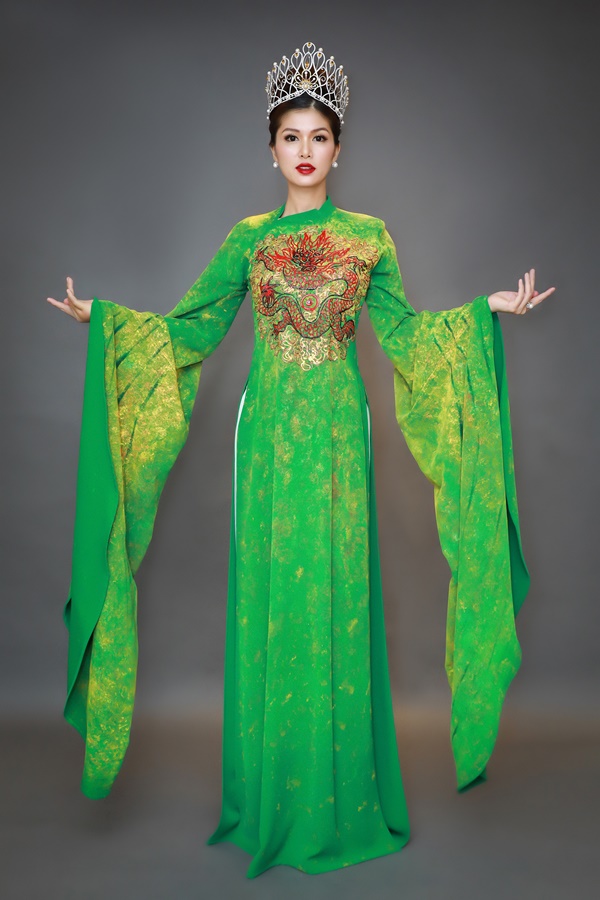 Mới đây, Nữ hoàng sắc đẹp thế giới Hồ Oanh Yến đã thực hiện bộ ảnh cùng NTK Đinh Văn Thơ cho BST mới nhất của anh mang tên “Con rồng cháu tiên”.